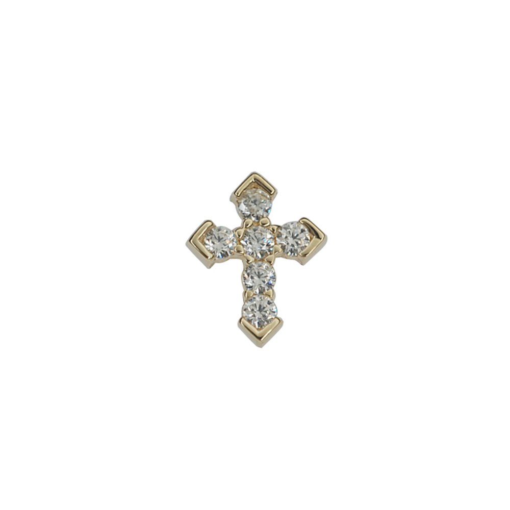 9K金 包镶十字架拧螺丝耳钉