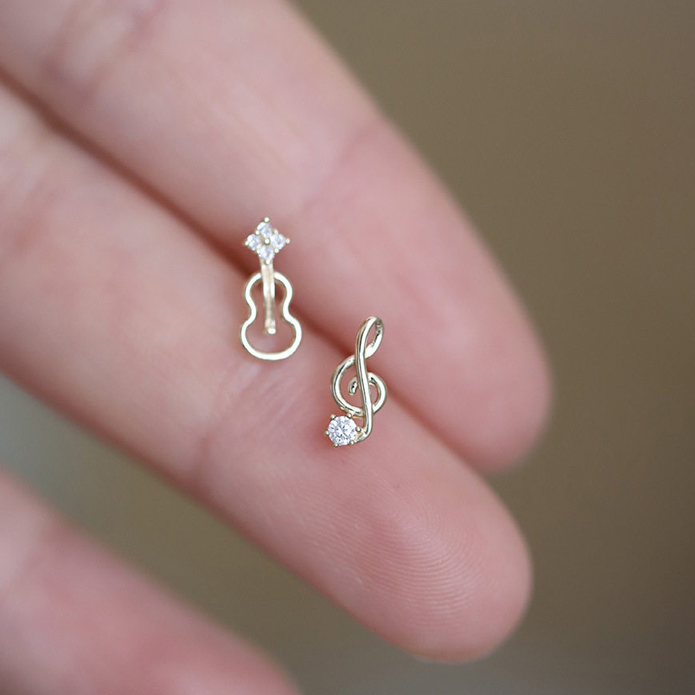 9K金 镶钻音符耳钉