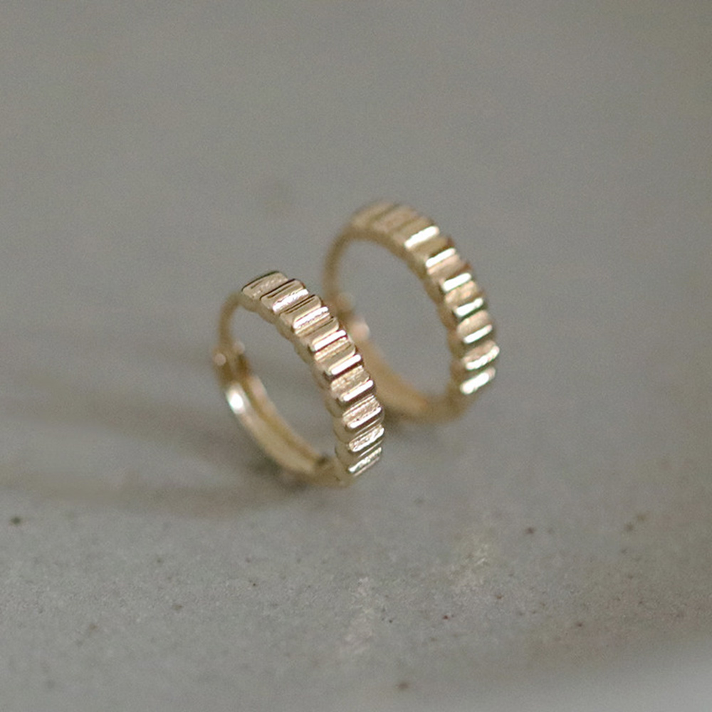 9K金 素金棱纹耳扣 格纹设计