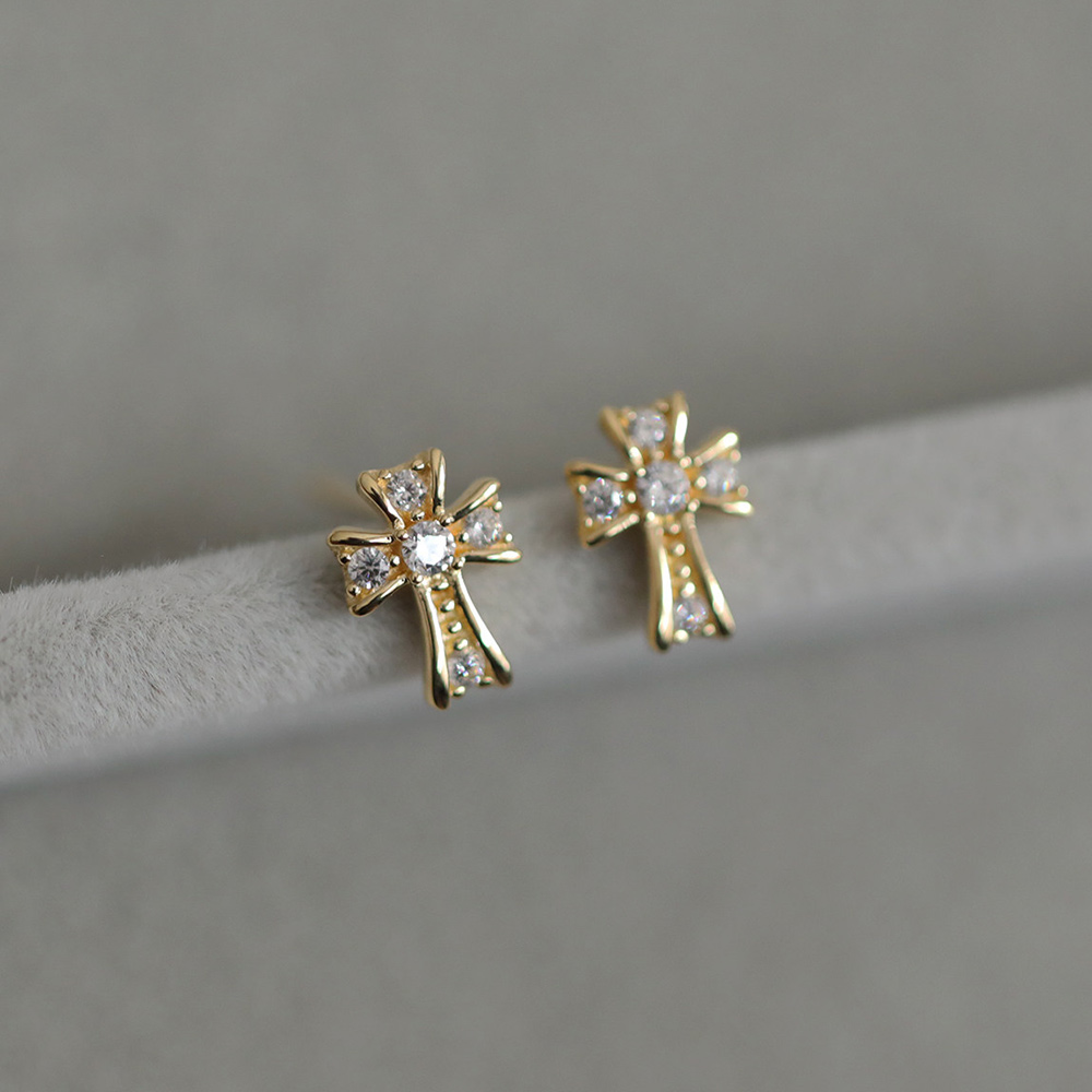 9K金 信仰十字架耳钉 高级复古宫廷风