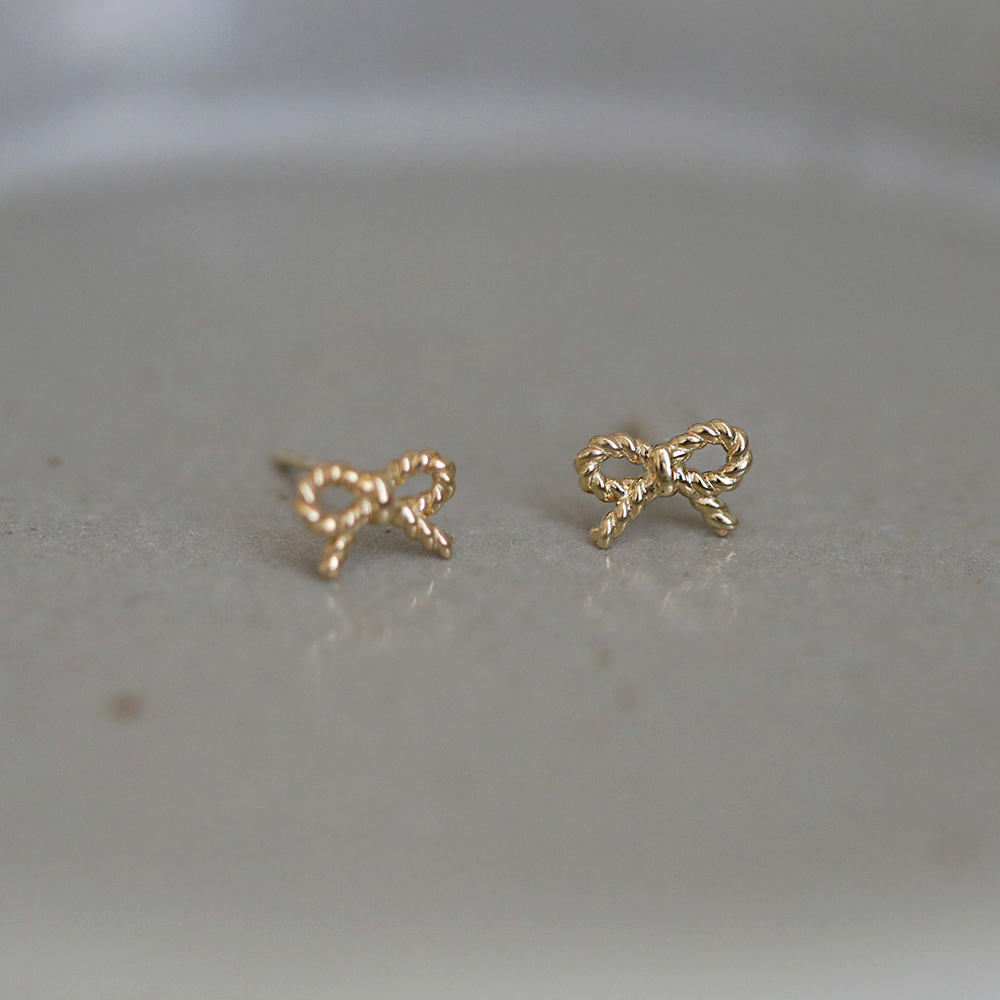 9K金 甜甜蝴蝶结耳钉 螺纹绳结