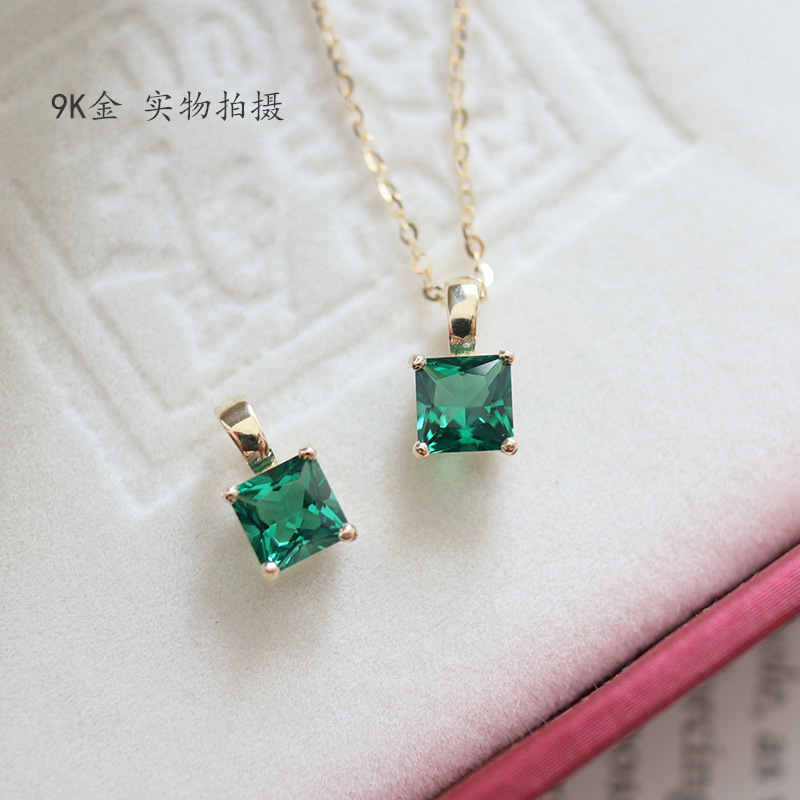 9K金 祖母绿方块吊坠
