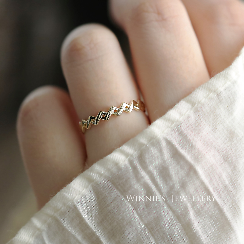 9k金 交错麻花戒指