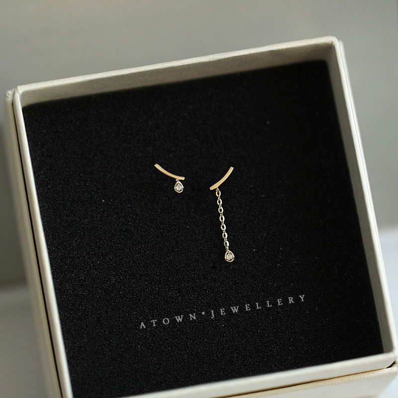 【说明】:气质款小耳钉,弧形部分是光板的,短款和长款下方都有一个镶锆石的小水滴呼应。这款一对出售不拆卖哦。