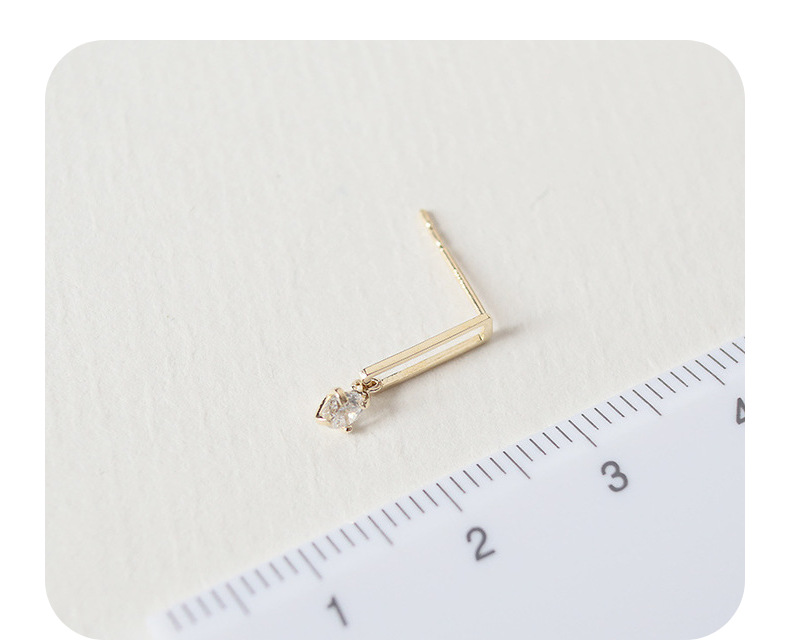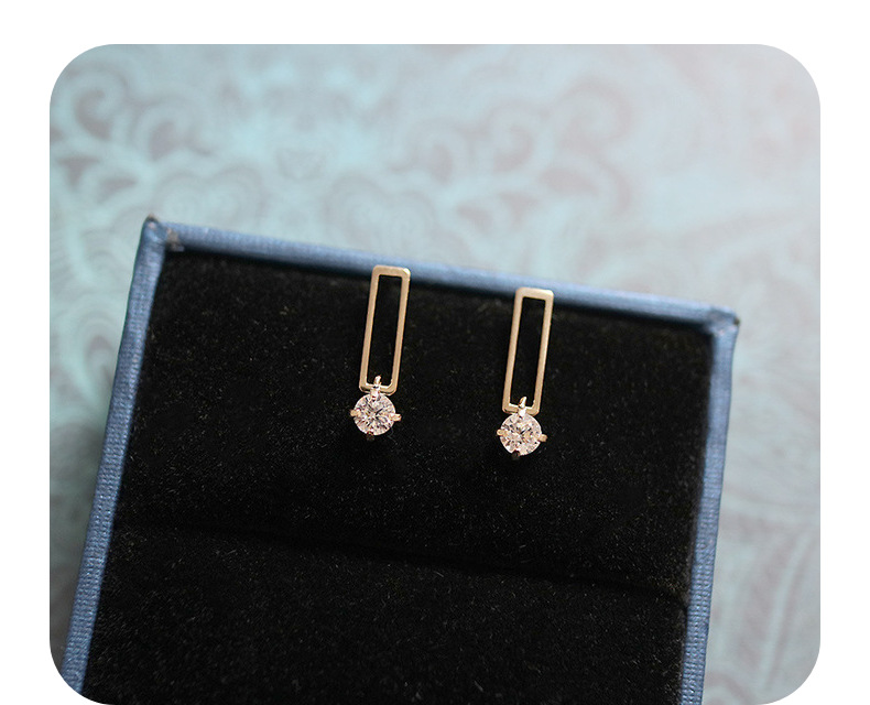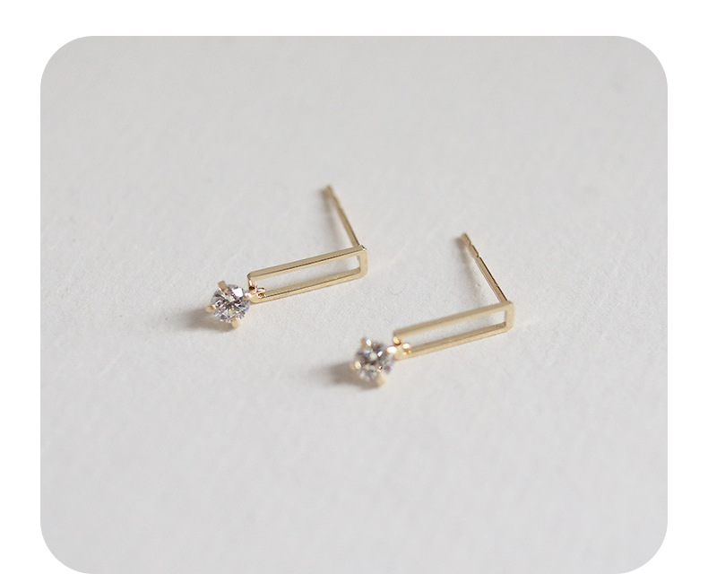 9K金 几何长方形一粒锆耳钉