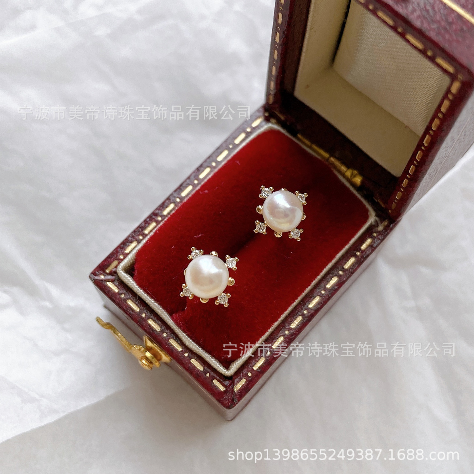 9K金 淡水珍珠包镶钻耳钉
