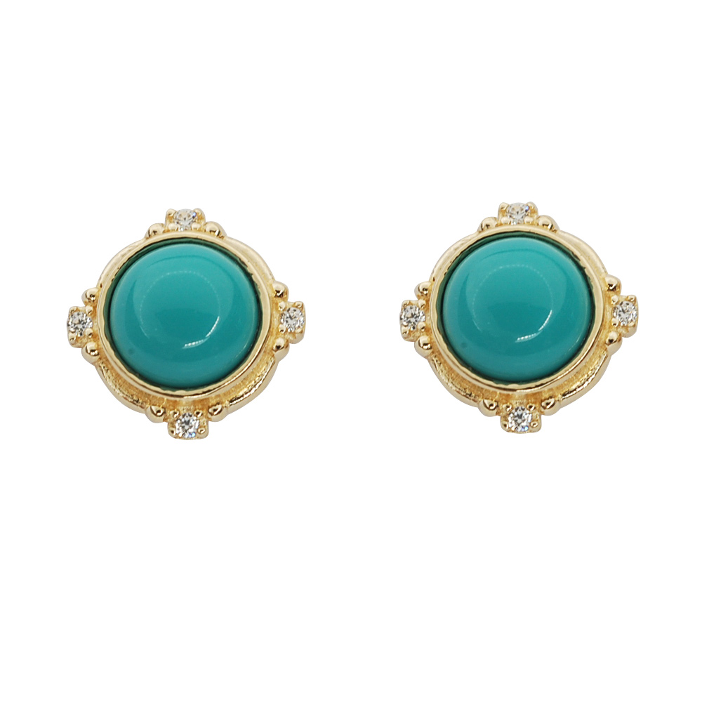 9K金 复古镶边绿松耳钉