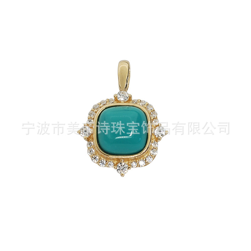 9K金 方形绿松石吊坠挂坠