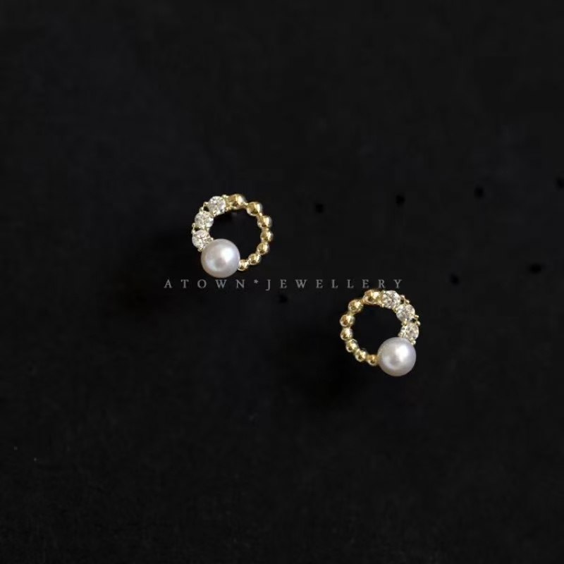 9K金 圆环珍珠耳钉