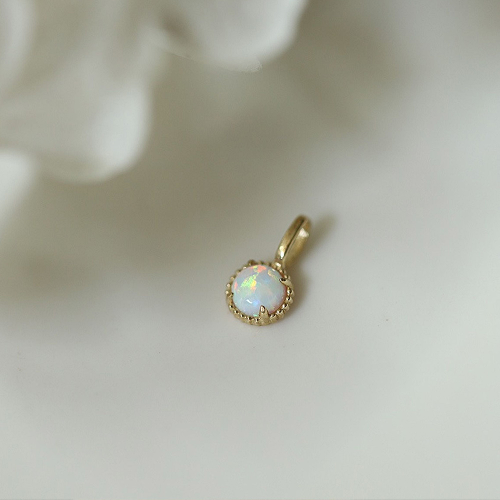 9K金 圆形欧泊吊坠项坠