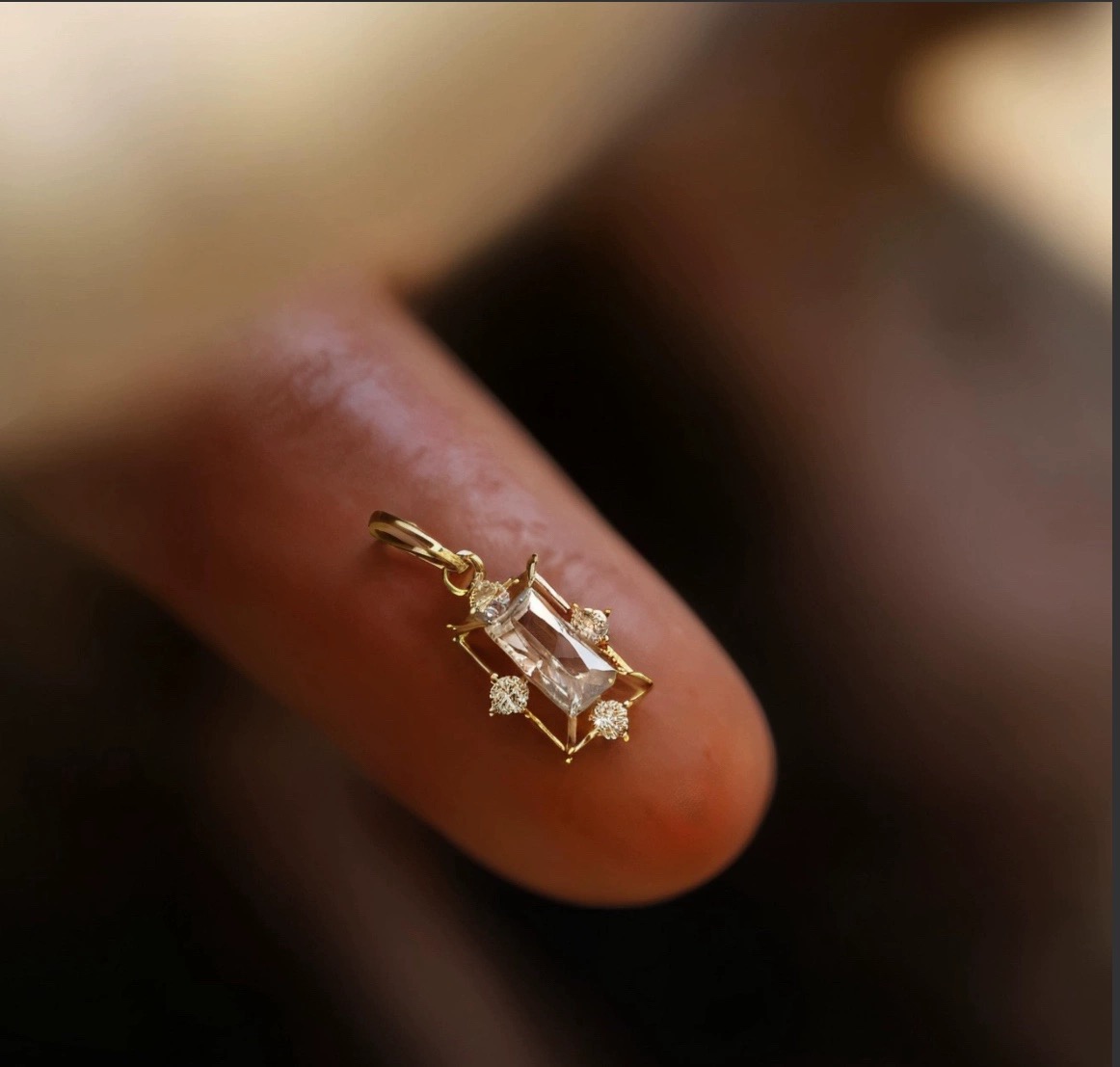 9K金 复古微镶长方镂空吊坠