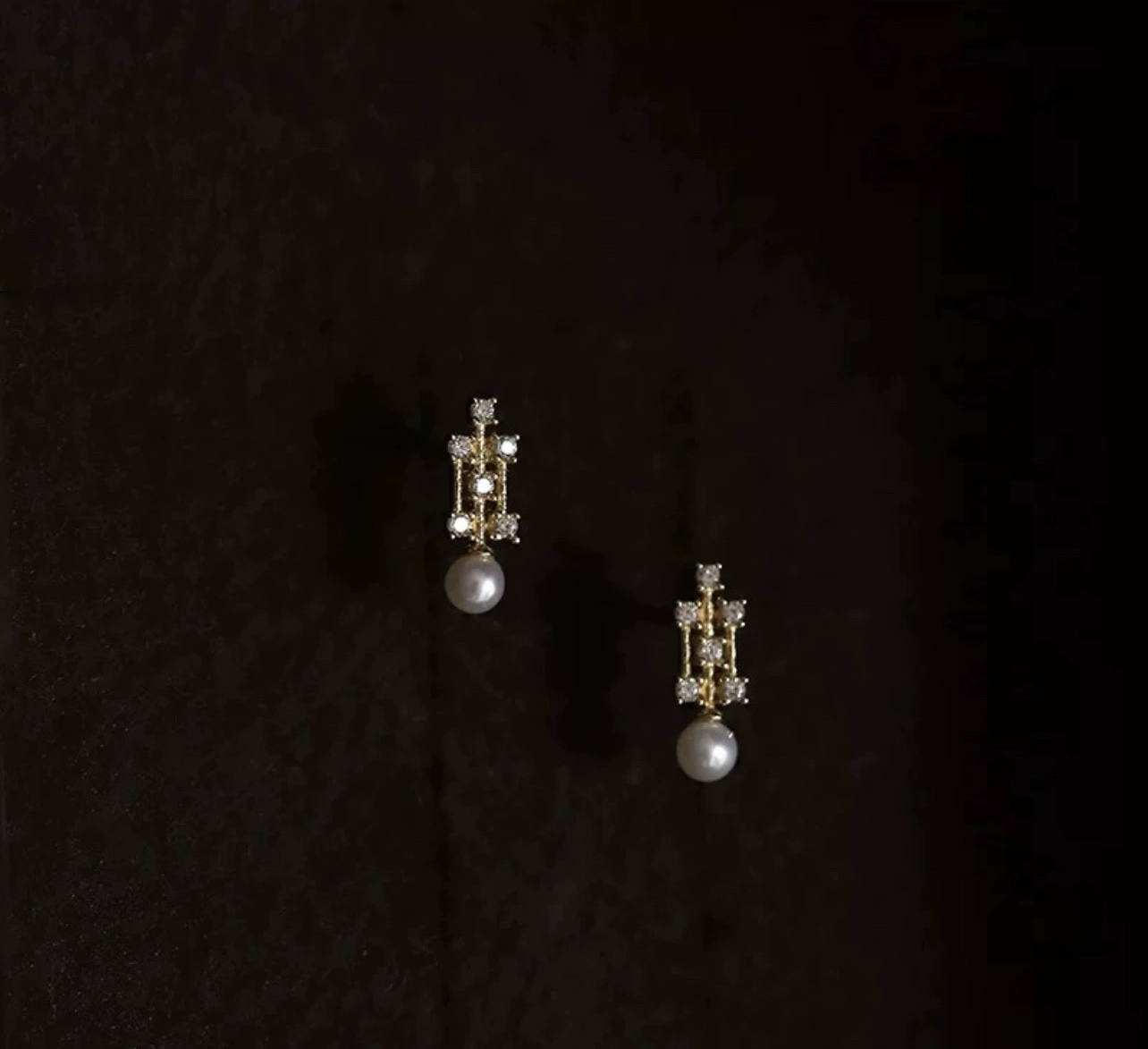 9K金 复古微镶镂空珍珠耳钉