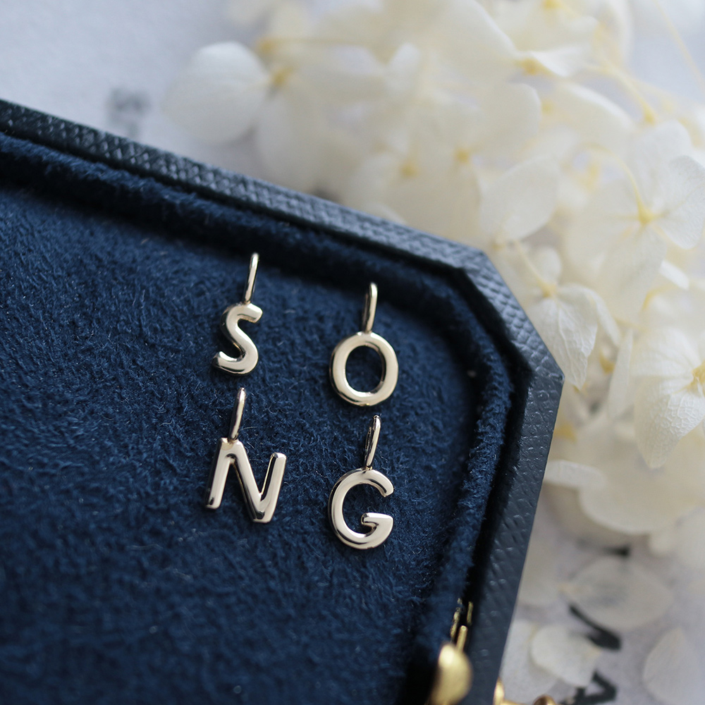 9K金 光面字母名字大写英文吊坠