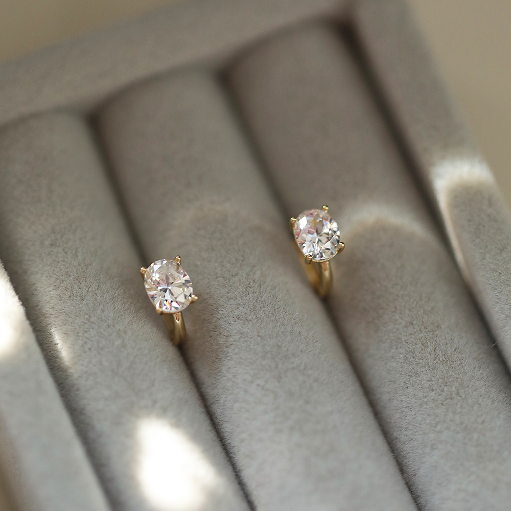 9K金 椭圆钻耳扣 清冷感透亮蛋面精致耳骨环耳环