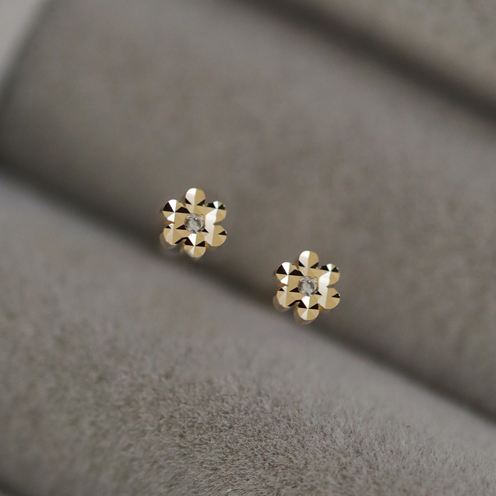9K金 mini精致闪亮小花朵耳钉