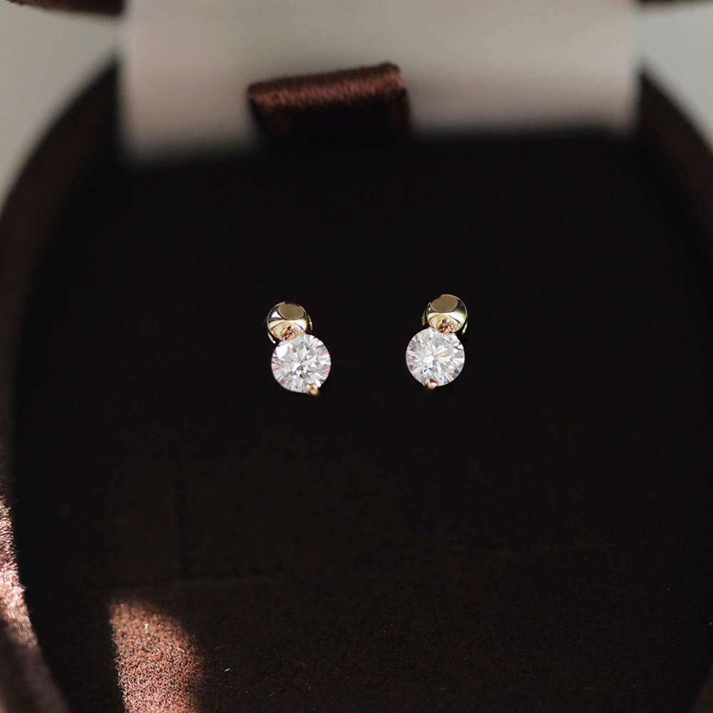 9K金 椭圆钻小坠耳钉