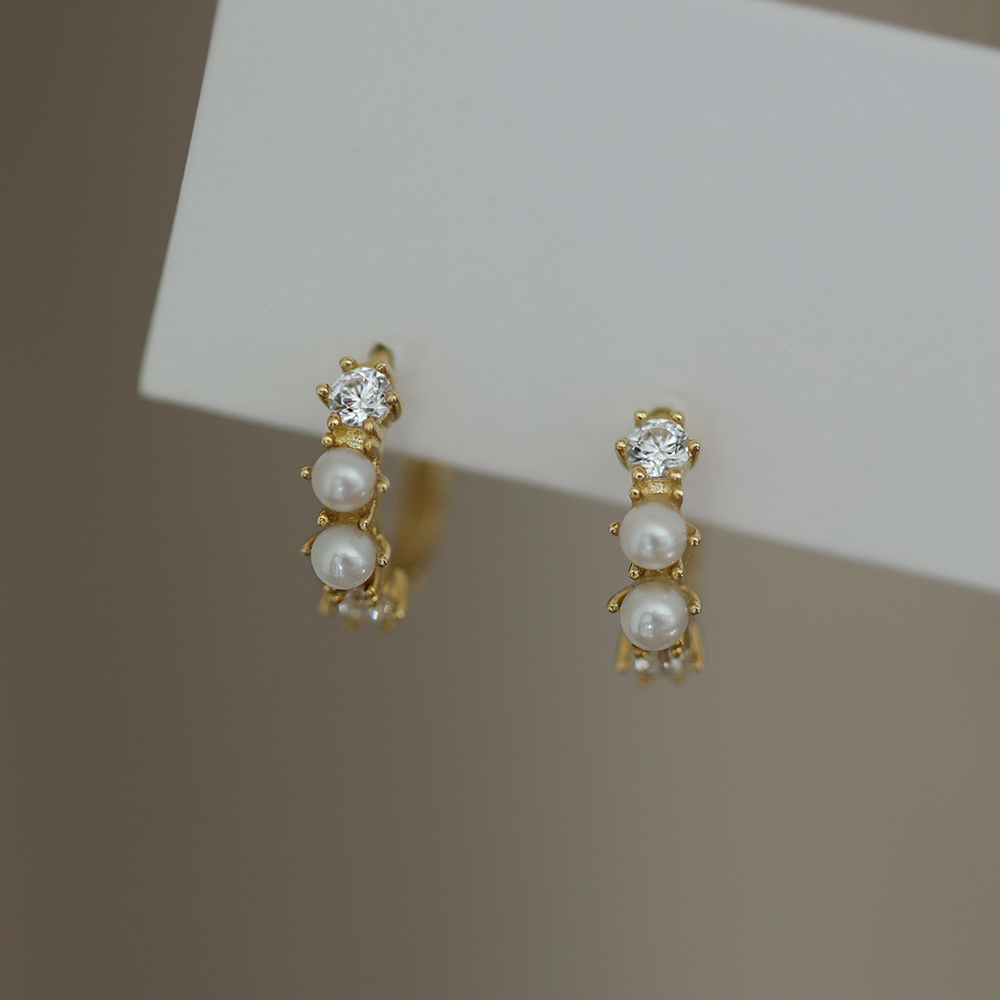 9K金 两钻两珍珠耳扣